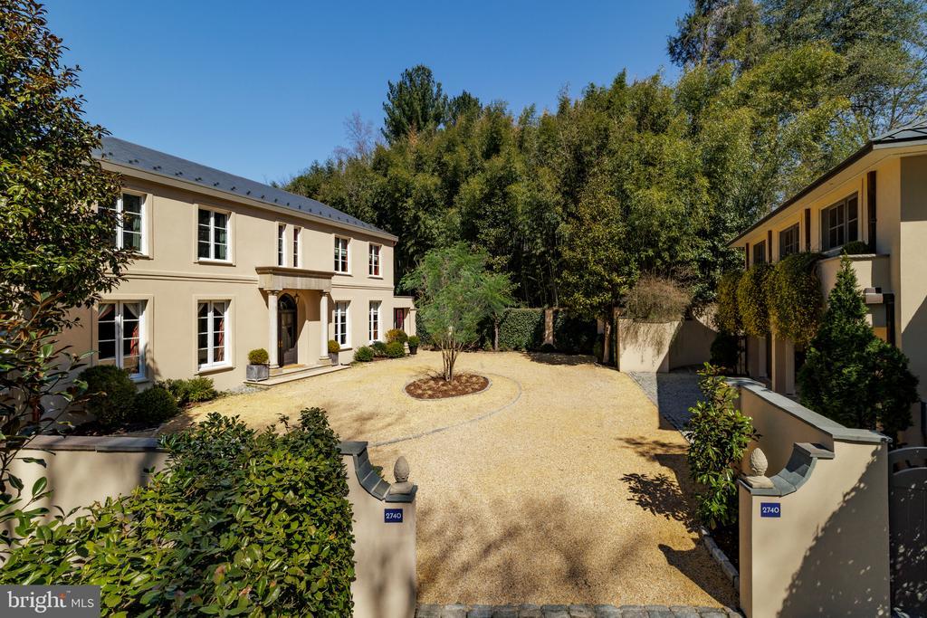 Branching off the prestigious Chain Bridge Road NW is a hidden private drive. The hedge-lined path meanders through verdant foliage to reveal a walled, circular pea gravel motor court upon which sits an elegant estate home. Evoking cues from the most vaunted European country homes – part Tuscan villa and part French provincial – the estate was created from the ground up by its visionary owner-developer. Constructed out of cinder block with thick walls and a recently refinished triple-coat stucco exterior, the home is a true fortress of luxury.