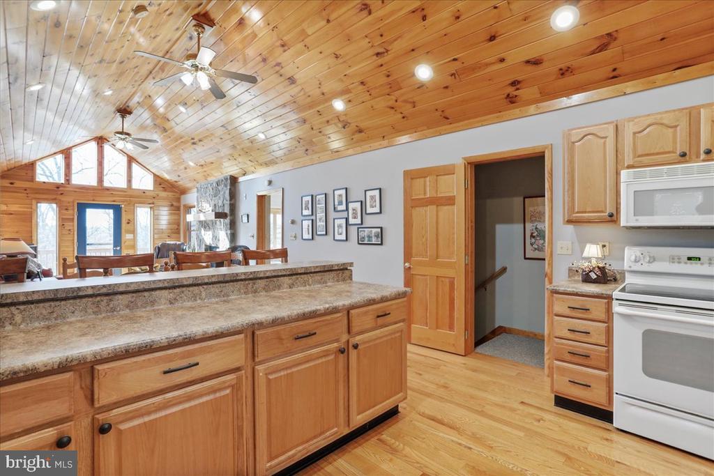 Welcome to 167 Sears Lane, a beautifully crafted A-Frame log home in Sun View Heights at Deep Creek Lake! This quality-built home has only been a private second home and not a rental property so it's been barely lived in and lovingly taken care of! It offers 2,688 finished square feet of living space, featuring 4 bedrooms and 3 full baths. Situated on a beautiful 1-acre lot surrounded by trees, this home provides the perfect balance of privacy and tranquility. As you step inside, you're greeted by soaring cathedral ceilings and an open floorplan, creating a bright and airy atmosphere. The main level boasts stunning wood floors, soaring ceilings and a spacious living room with a floor to ceiling local fieldstone gas fireplace, and a fully updated kitchen with crisp white cabinets and hickory accents, perfect for entertaining. Enjoy winter lake and mountain views from the expansive deck that spans the back of the home, accessible from both the living room and the main floor owner's suite.