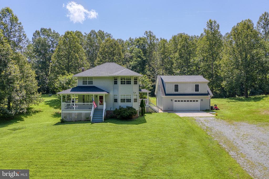 Welcome to Your Own Slice of Country Paradise! Tucked away at the end of a private lane, this charming 3BR/3.5BA Colonial offers the peace and privacy you’ve been dreaming of—on nearly 4 acres of wooded serenity with no HOA and no restrictions. Whether you're looking to spread out, start a hobby farm, or simply enjoy nature, this property checks all the boxes. Step inside to find three finished levels of versatile living space. The main level offers a great flow for everyday life and entertaining with a cozy living room just off the kitchen, a dedicated dining area for formal meals, and a separate family room perfect for movie nights or watching the big game. The galley-style kitchen features plenty of counter space for prep and cooking. The spacious primary suite offers a private full bath and a walk-in closet. Two additional upstairs bedrooms and a full hall bath provide plenty of room for family or guests. Downstairs, the finished walkout basement includes a large rec room for games or lounging, a bonus room ideal for a den, home gym, or crafting space—and even a full bathroom for convenience. Outside, enjoy your morning coffee or evening wine on the wraparound porch, listening to the sounds of nature. With 3.91 private acres, there’s room to explore, garden, raise animals, or just soak in the solitude. But that’s not all—this property also includes a massive detached 2-car garage with a finished upper-level loft offering over 1,000 square feet and its own full bath! The possibilities are endless: use it as a guest suite, rental income opportunity, private office, man cave, or creative studio. High-speed Comcast internet available—so you can work remotely while living the country life! Don’t miss this rare opportunity to own a peaceful retreat with room to grow, play, and create your dream lifestyle.